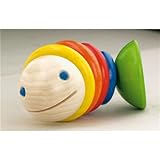 Moby the fish bows, twists, and gently snaps back into place. He makes a soft rattling sound when handled and can stand on his tail. This delightful little toy can be tied to a play gym, secured to a stroller, or left in the playful hands of a curious child. Made of maple wood. Multiple coats of natural, water-based, non-toxic lacquers ensure Moby's colors will stay vivid and bright for years to come. A quality toy that was crafted to withstand years of childhood adoration and play. Ages 6 months and up.