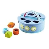 Which blocks fits where? The Curioso shape sorter is a matching game that acquaints children with shapes and colors. The acoustic and optical elements of the colored blocks stimulate perception. Includes eight discovery blocks. Made of cotton/polyester, plastic.