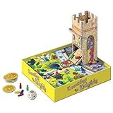 Players roll the dice to determine how many brave knights must be tossed into the castle's tower. The unlucky player who rolls a door on the dice sends the hapless knights into the pit by the moat. Whoever saves the most knights from this fate wins! This charming game comes with 1 game board, 32 wooden knights, 1 wooden dice, 1 castle tower (made of heavy cardboard), 8 coins and 1 set of game instructions. 2 - 4 players for ages 4 and up.