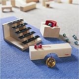 An acoustic extension for the marble run. This set contains 1 sound staircase, 1 bridge with bell, 1 redirection block and 6 glass marbles. Sound staircase measures 4" x 3" x 5.5". Made from solid hardwood. Compatible with all Haba building block sets (T.C. Timber not included).Recommended for 3 years and up. Made in Germany.