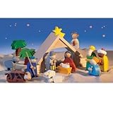 Wonderful wooden nativity set. Children can play with the solid wooden figures and act out the Christmas story. A great gift too. Contents Include:the stable, Mary, Baby Jesus, Joseph, shepherd, lying sheep, standing sheep, donkey, ox, angel, 3 kings and 2 palm trees. Made of Beechwood.Size: 8-2/3 x 6-1/3 x 3 inch stable, and the shepherd is 4-1/3 inches. Imported from Germany. Warning: Choking Hazard. Not for children under 3.
