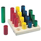 With this smaller version of the Jumbo Pegboard from Haba, encourage shape, color and counting skills with this learning toy. The chunky pegs are perfectly sized for toddler hands. The size and weight of this set make it perfectly at home on a tabletop or nightstand. The pegs can also be used for stacking.This is a beautifully crafted to that was crafted to withstand years of childhood adoration and play. Made of solid beech wood. Wipe clean with slightly damp cloth. Air dry. Designed and manufactured in Germany.